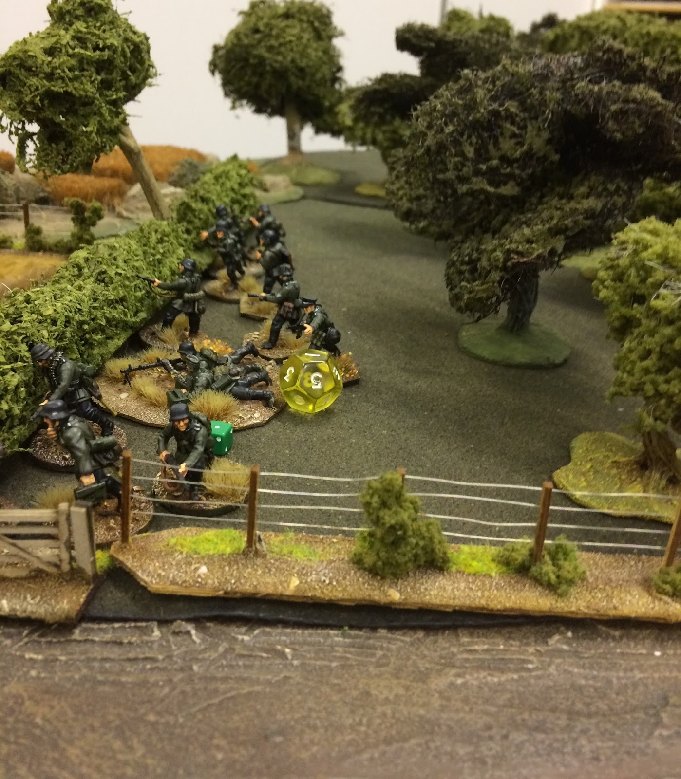 The section in the ditch continues to lay down fire on the section the factory, which ended the game with a single LMG gunner and its corporal!